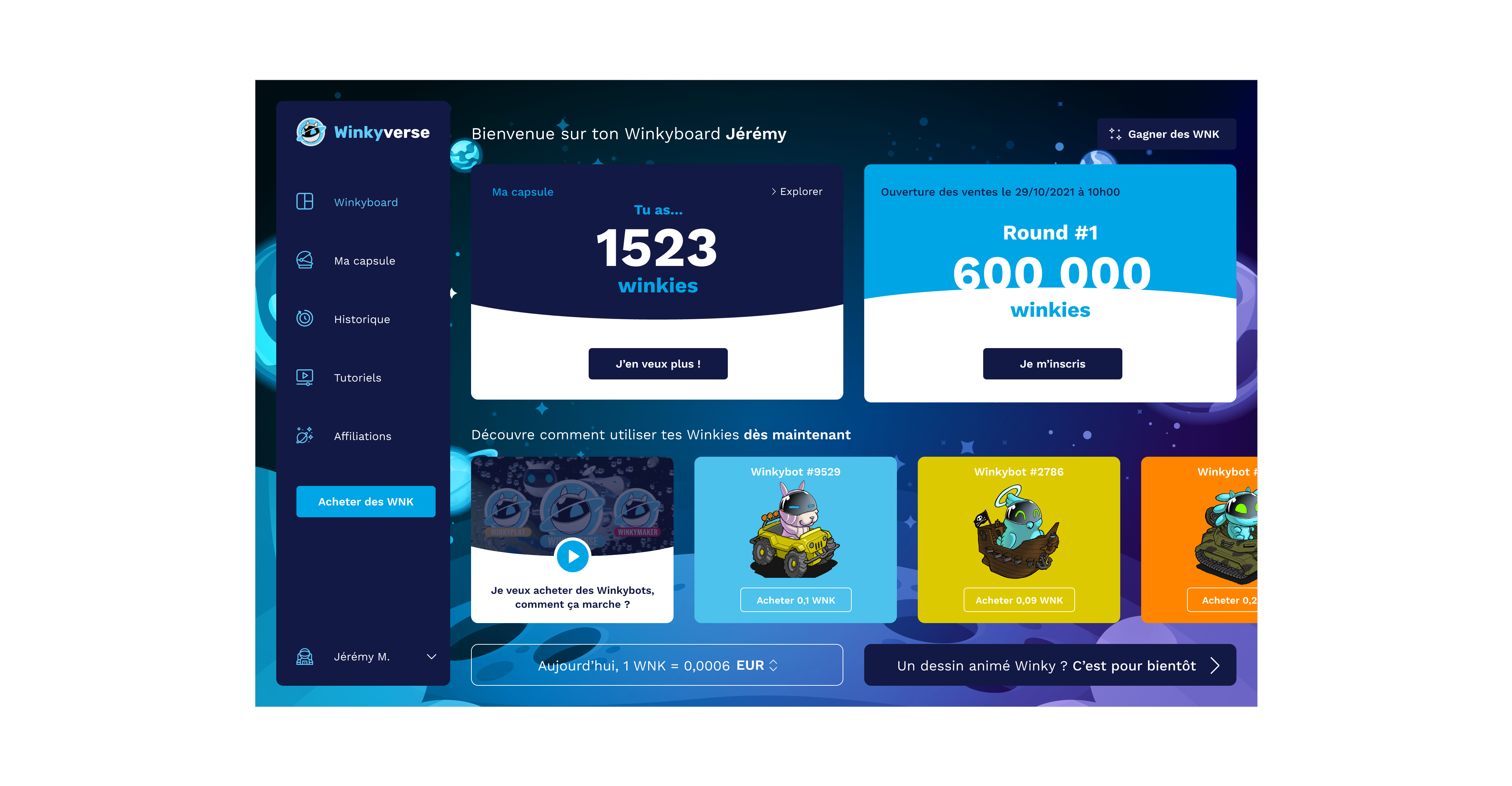 Ce site a pour objectif la gestion et l'achat de tokens lors de l'ICO du projet dans l'univers Winky